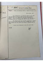 Memorandum To The Outline Scheme For Broadcasting Service Memorandum suggesting that the towers to be built not be under control of the provinces in which they are built but rather a centralised sub-comittee with representatives. -