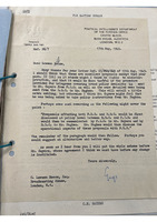 V.H. Winston to - Outline Of Scheme For Broadcasting Service Throughout The S.S And F.N.S Outlines the plans for building linked broadcasting towers in locations P. Wellesley,Batu Gajah,Kuala Lampour and the Malacca settlement. Outlines possible difficulties and funding plans. -