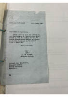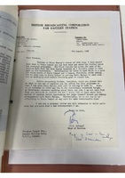 Peter Albany of BBC Far Eastern Services to Terence Cooper of BBC London - on replacement speaker and date of tape delivery Peter Albany writes to Terence Cooper that a replacement speaker has been secured, LCA Mohammed Suffia Bin Hashim. He also notes the topics he will be covering, and that the tape will arrive at the BBC London offices on the 11th of September 1958 -