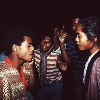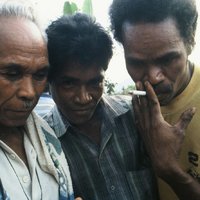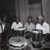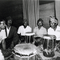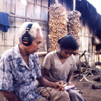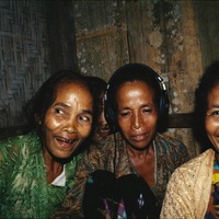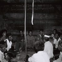 Two singers with Ne' Sina listening to their duetting, Tana 'Ai, Sikka, Indonesia : Flores (eastern), 1992. Slide D. Rappoport